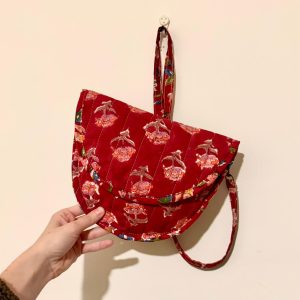 תיק צד ירח- פרינט פרחים אדום